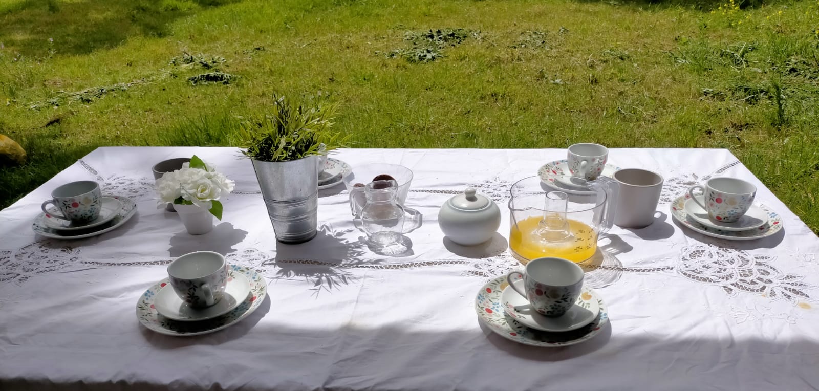 • beautiful lawned garden with trees and garden furniture with sun loungers