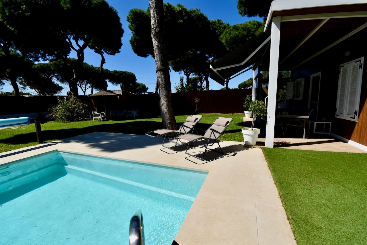 Lovely and comfortable holiday home in Chiclana de la Frontera, Costa de la Luz, Spain with private pool for 5 persons. The house is situated in a rural and wooded beach area and is 3 km from La Barrosa beach.