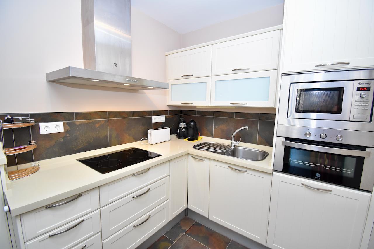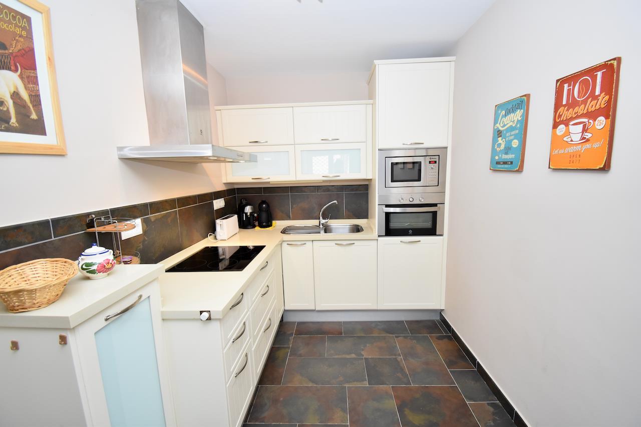 • kitchen with gas hob, electric oven, microwave, dishwasher, refrigerator, freezer, coffee machine, electric kettle and toaster