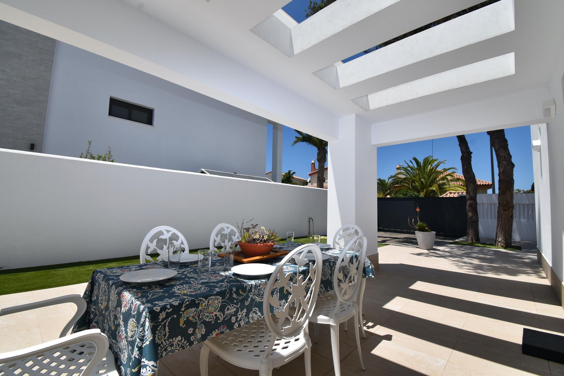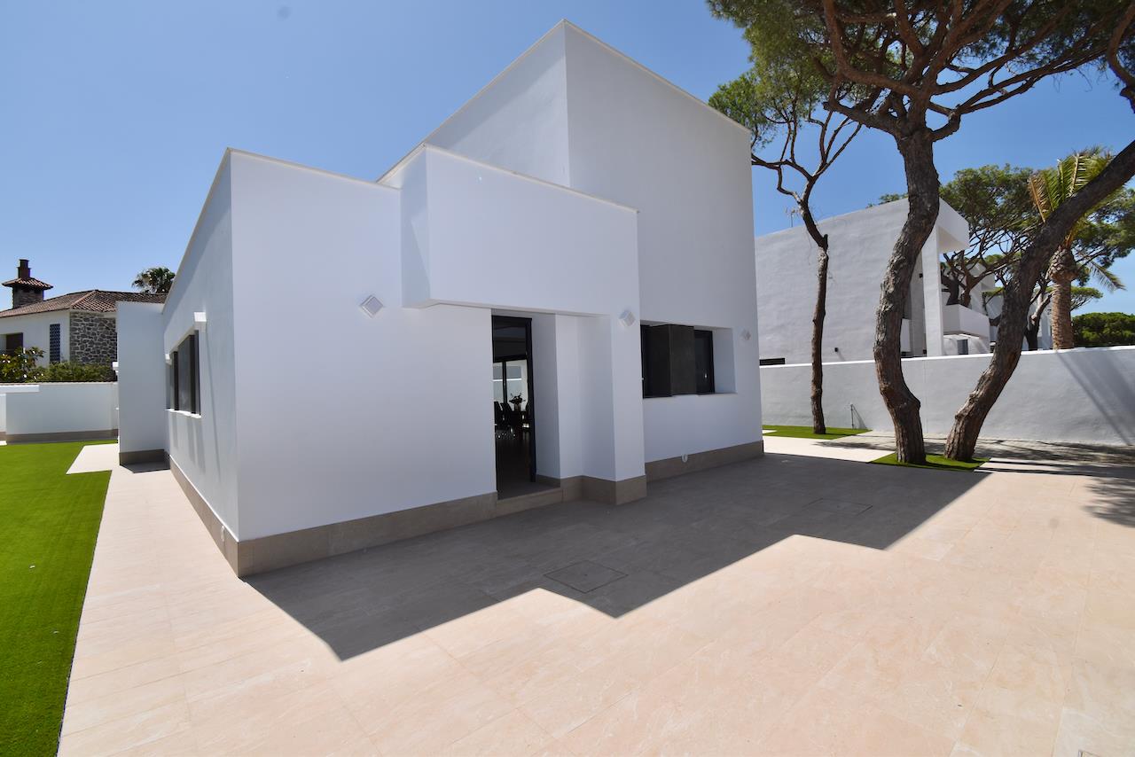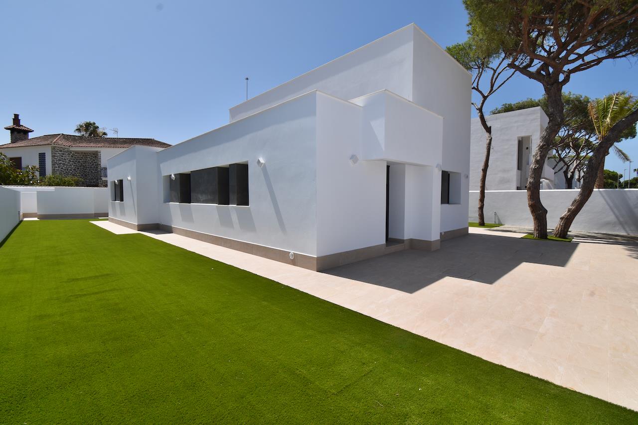 Modern and luxurious villa with private pool in Chiclana de la Frontera, Costa de la Luz, Spain for 8 persons. The house is situated in a residential beach area and is 1 km from La Barrosa beach.