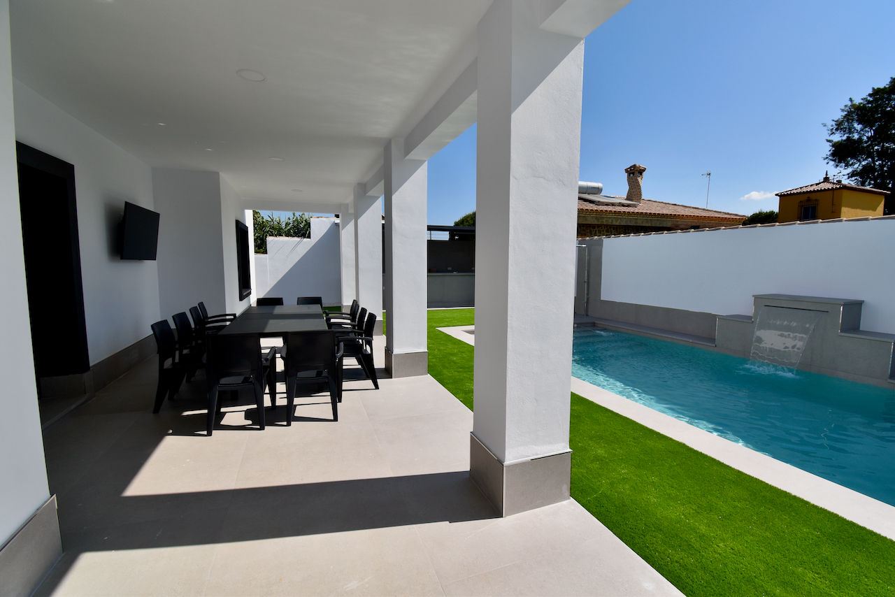 Modern and luxury villa with private pool in Chiclana de la Frontera, Costa de la Luz, Spain for 16 persons. The house is situated in a rural beach area, close to a tennis court and at 4 km from Chiclana.