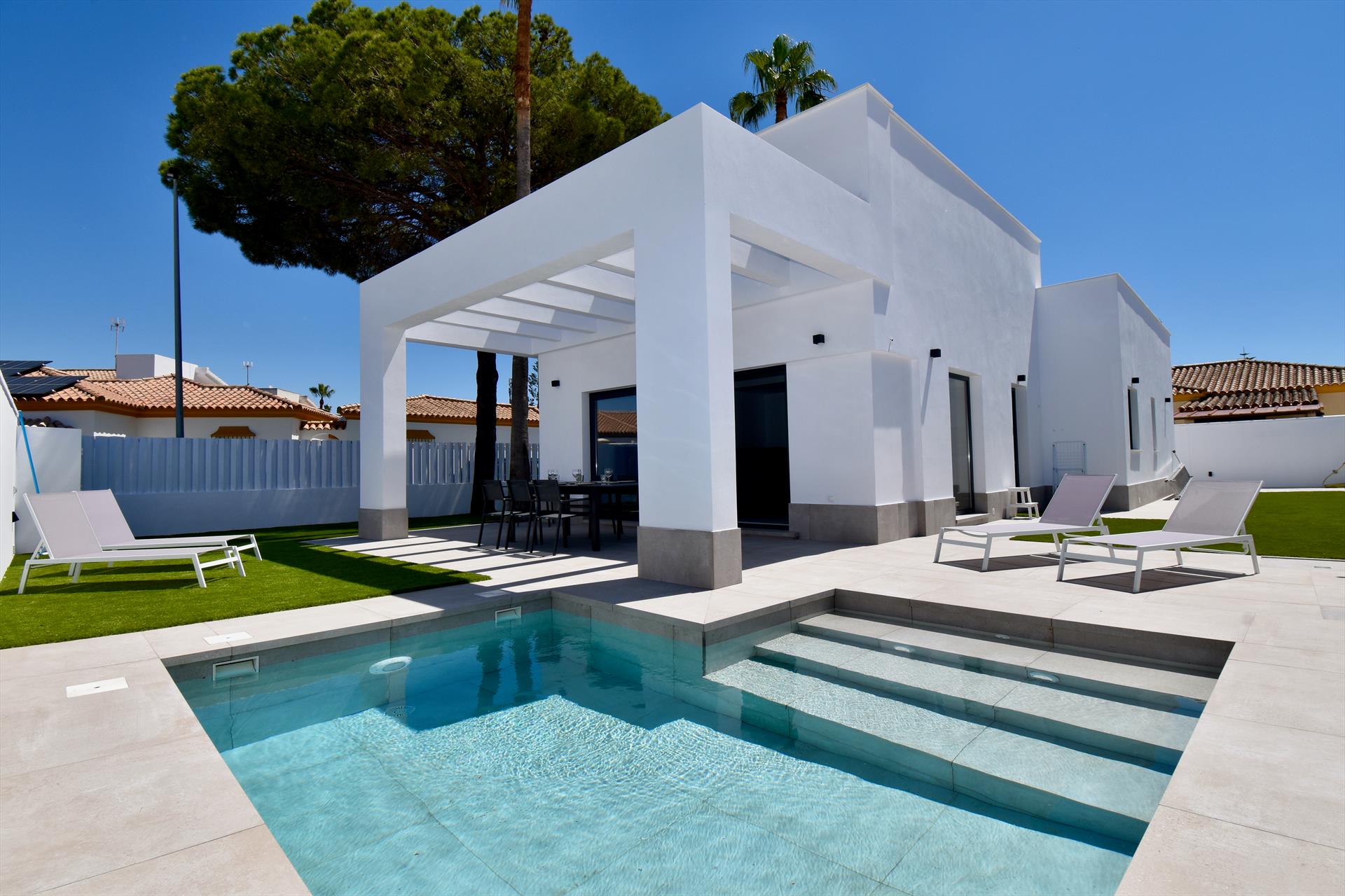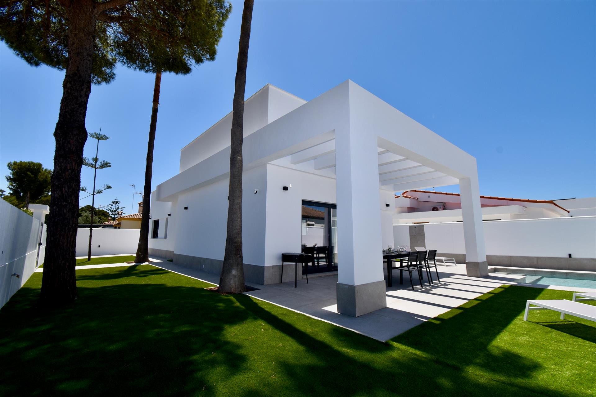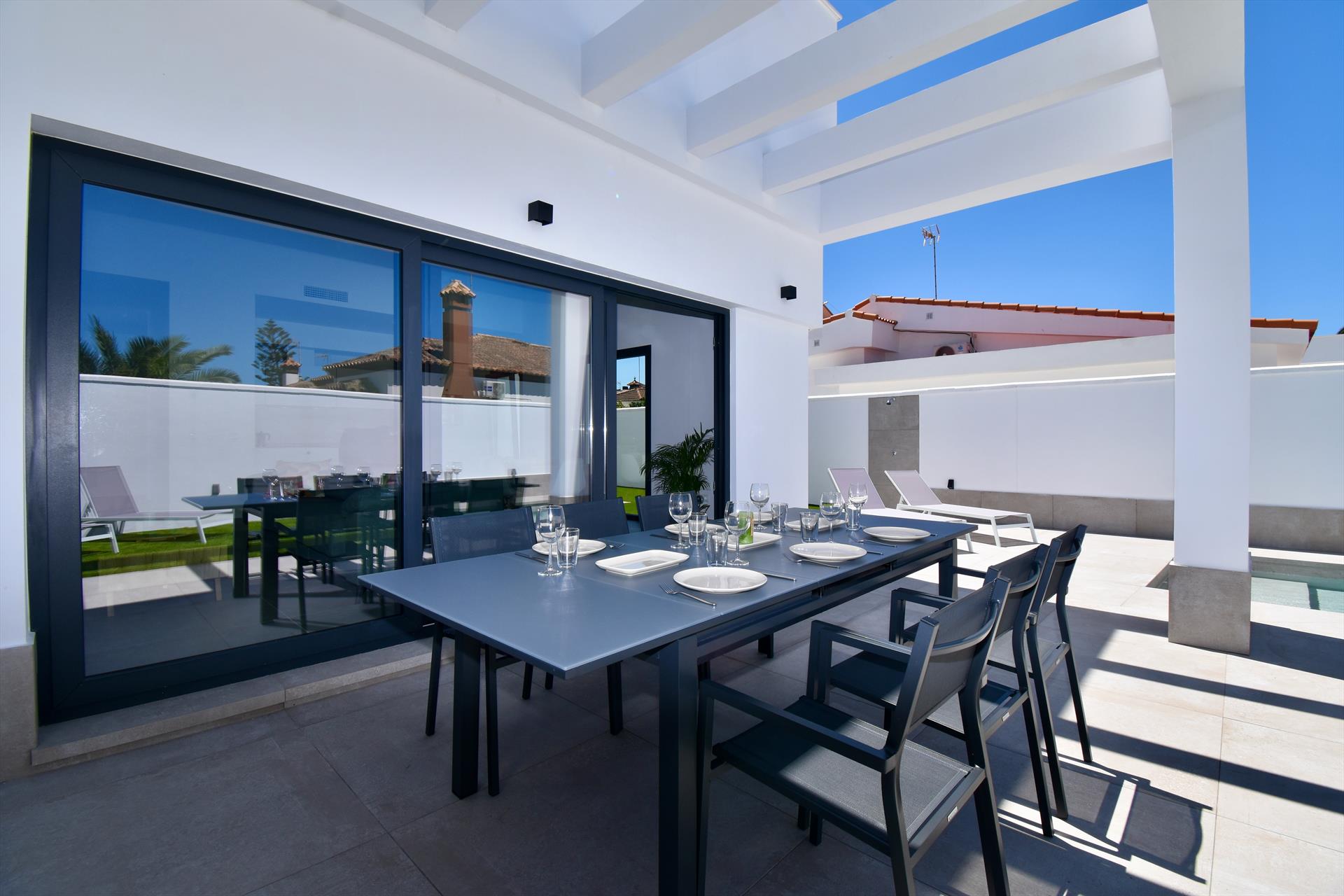 Modern and luxury villa with private pool in Chiclana de la Frontera, Costa de la Luz, Spain for 6 persons. The villa is situated in a residential beach area, close to restaurants and bars, shops and supermarkets, 3 km from La Barrosa beach and 3 km from La Barrosa.