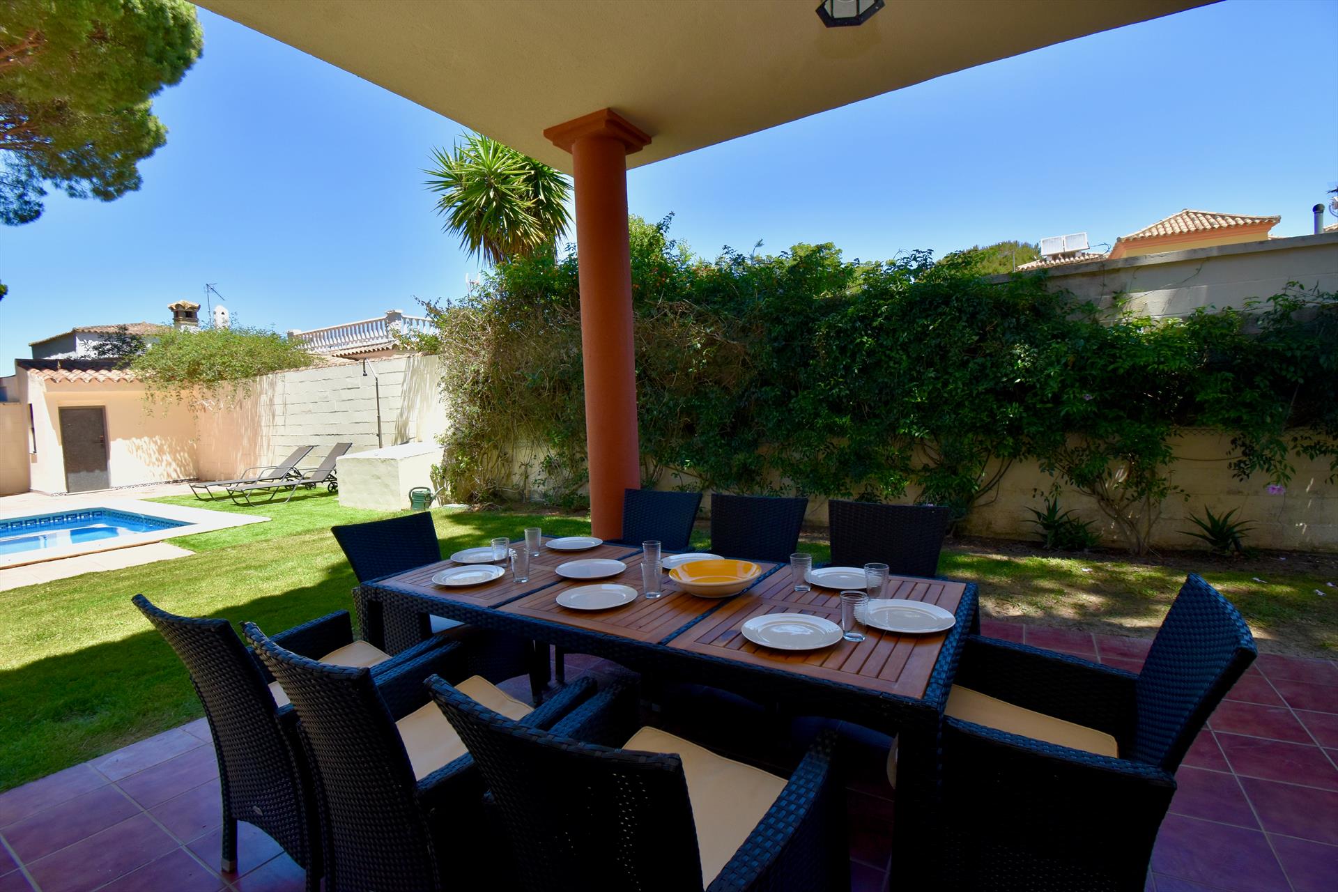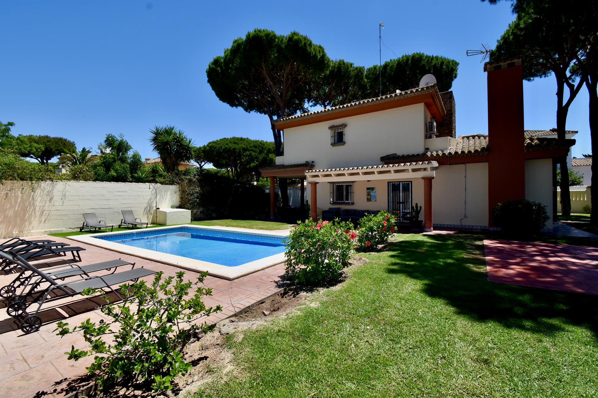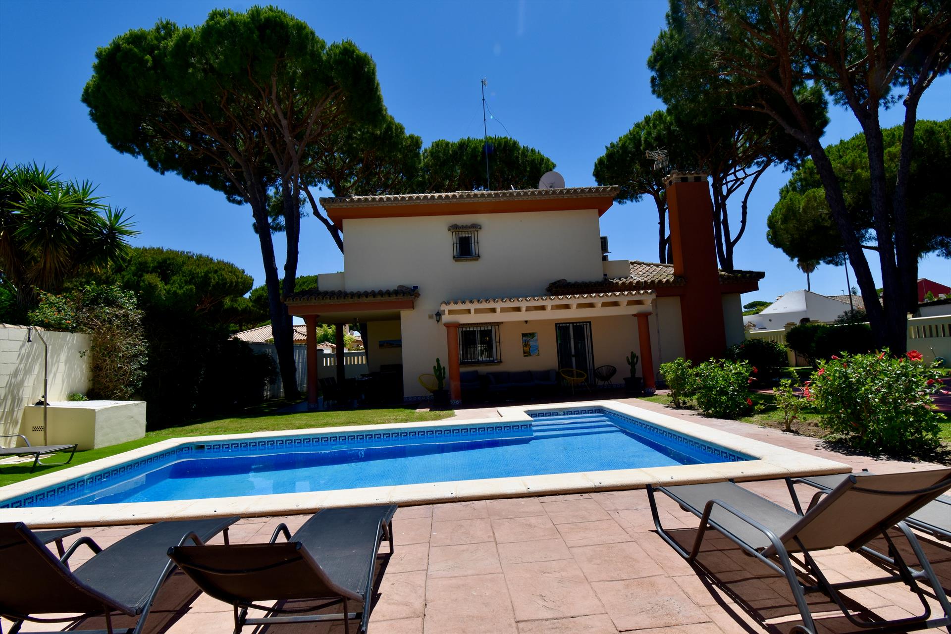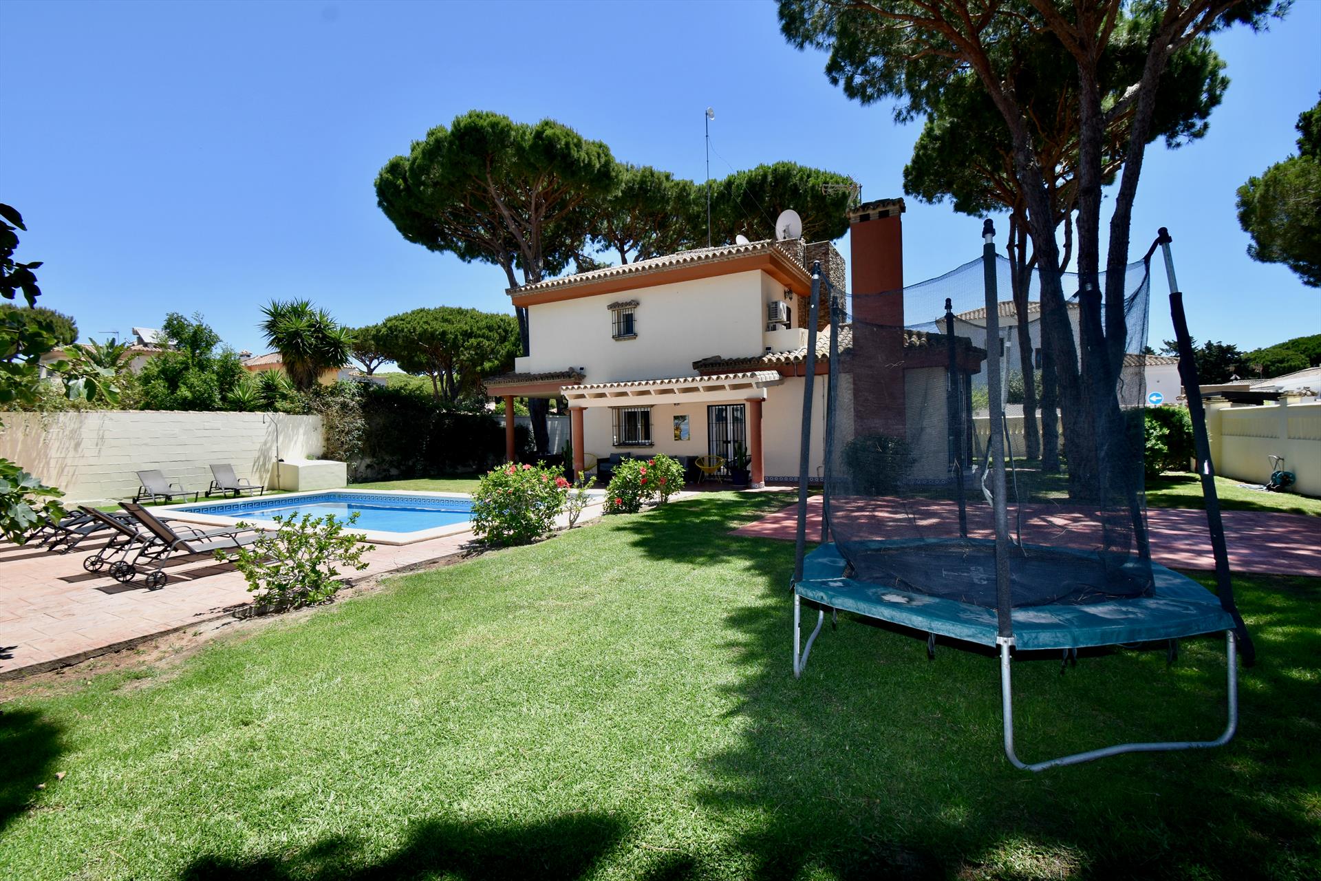 Villa with private pool in Chiclana de la Frontera, Costa de la Luz, Spain for 10 persons. The house is situated in a residential beach area, at 3 km from La Barrosa beach and at 6 km from Chiclana.