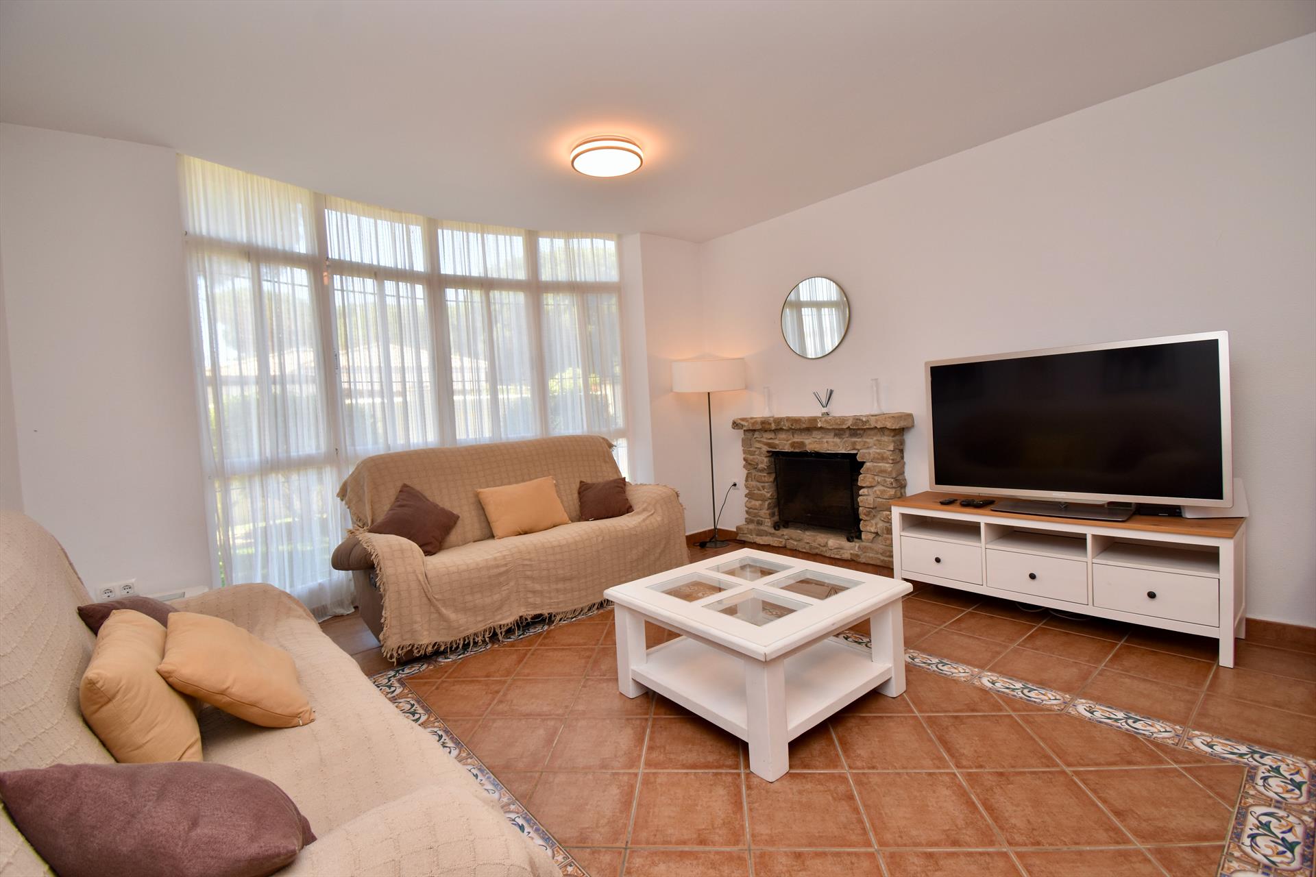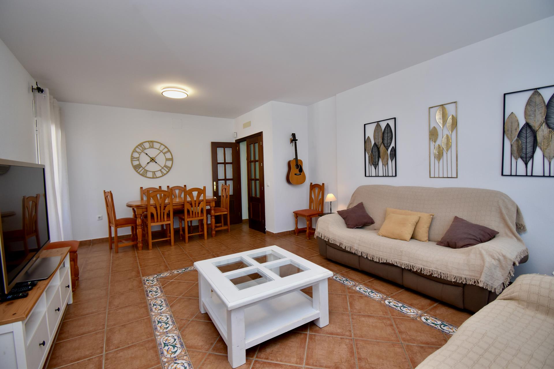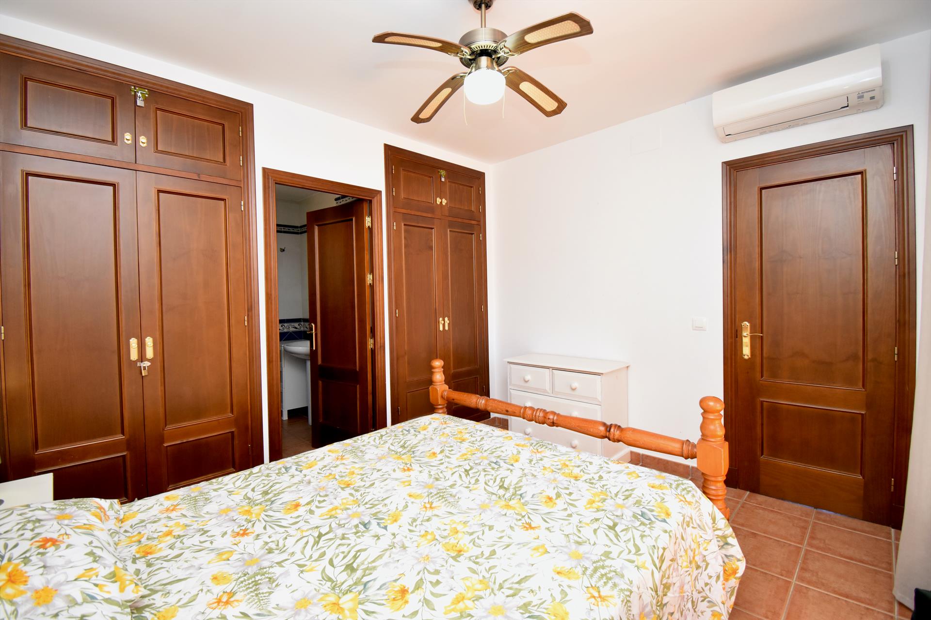 The villa has 4 bedrooms and 3 bathrooms, spread over 2 levels. The accommodation offers a lawned garden with trees. The vicinity of the beach, places to shop, sports activities, entertainment facilities, places to go out, sights and culture makes this a fine villa to spend your holidays in Spain with family or friends.