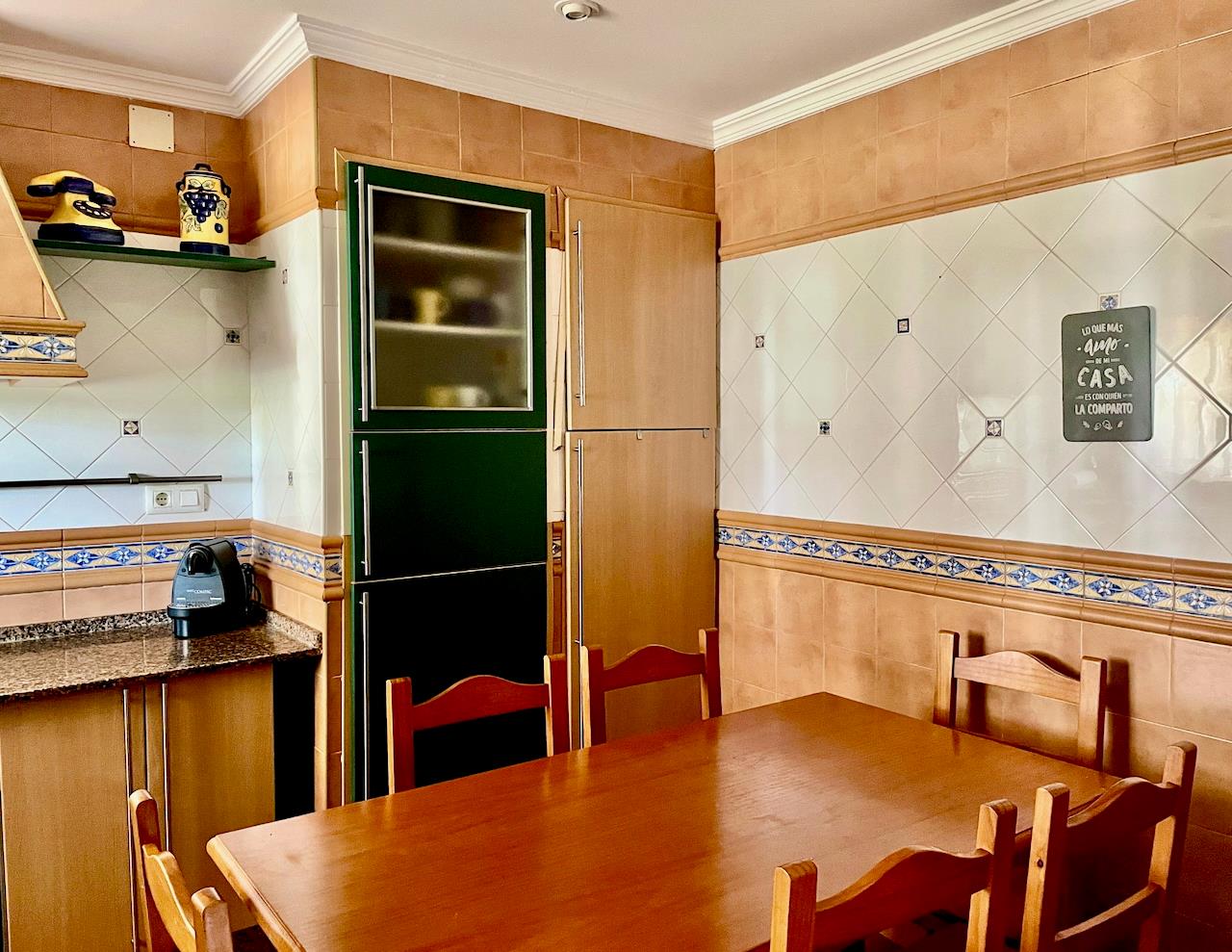 • kitchen with electric hob, electric oven, microwave, dishwasher, refrigerator-freezer, coffee machine, toaster and juicer