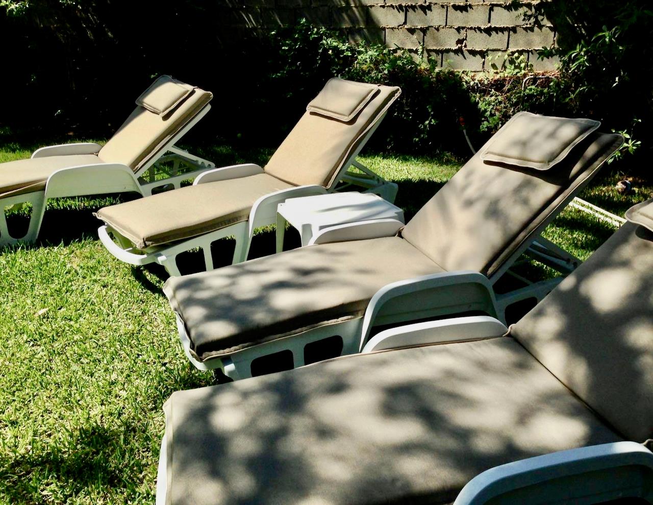 • lawned garden with trees and garden furniture with sunbeds