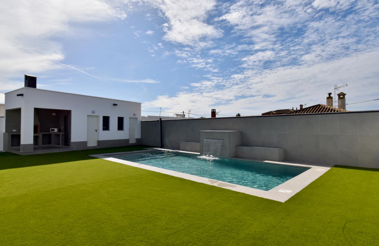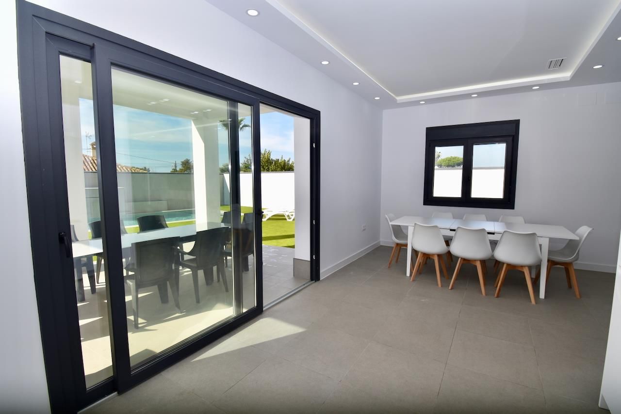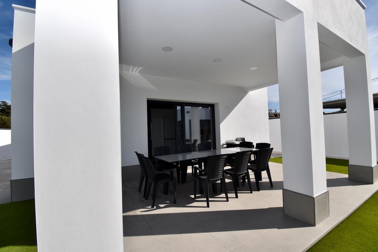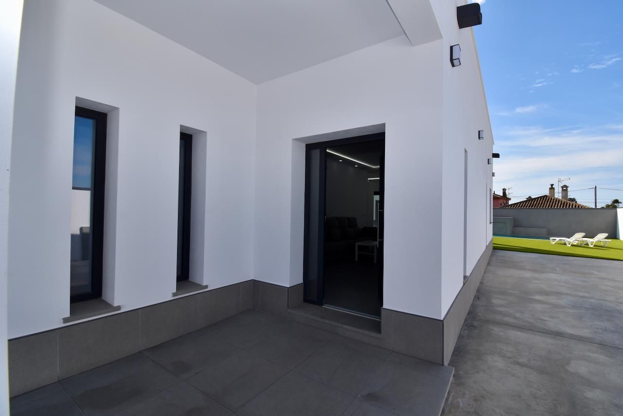 Modern and luxurious villa with private pool in Chiclana de la Frontera, Costa de la Luz, Spain for 12 persons. The house is situated in a rural beach area and is 4 km from Chiclana.