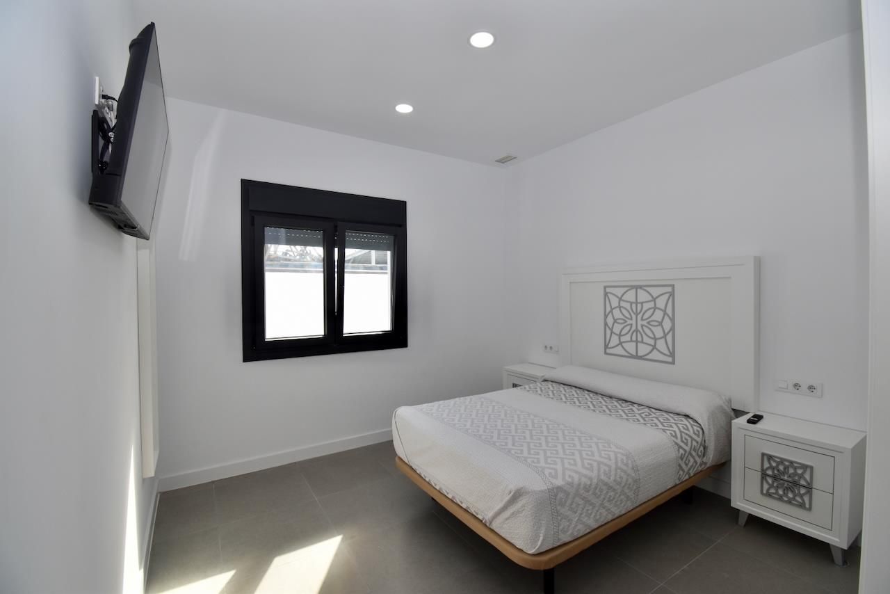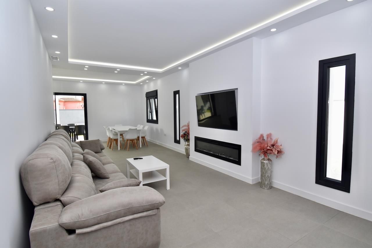 The house has 4 bedrooms and 3 bathrooms. The accommodation offers a lawned garden. The vicinity of the beach, shopping places, sports activities, entertainment facilities, nightlife, sights and culture makes this an ideal villa to spend your holidays in Spain with family or friends.