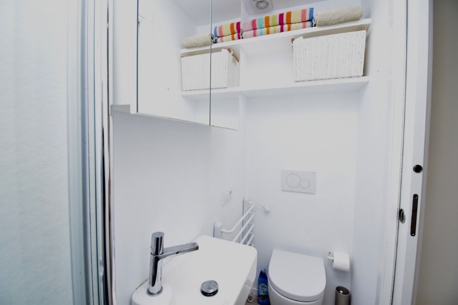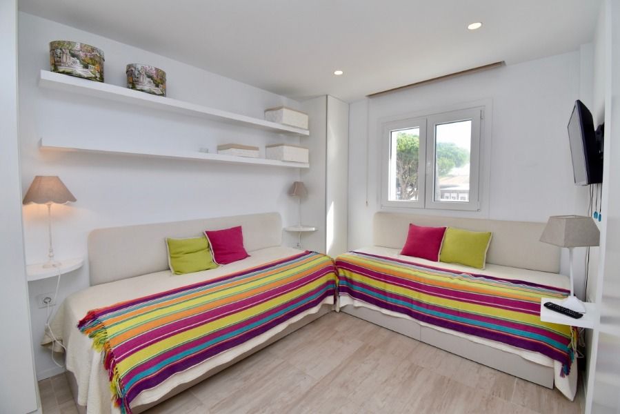 The apartment has 2 bedrooms and 2 bathrooms, spread over 2 levels. The accommodation offers a lawned communal garden with trees. The vicinity of the beach, places to shop, sports activities, entertainment facilities, places to go out, sights and culture makes this a fine apartment to spend your holidays in Spain with family or friends.