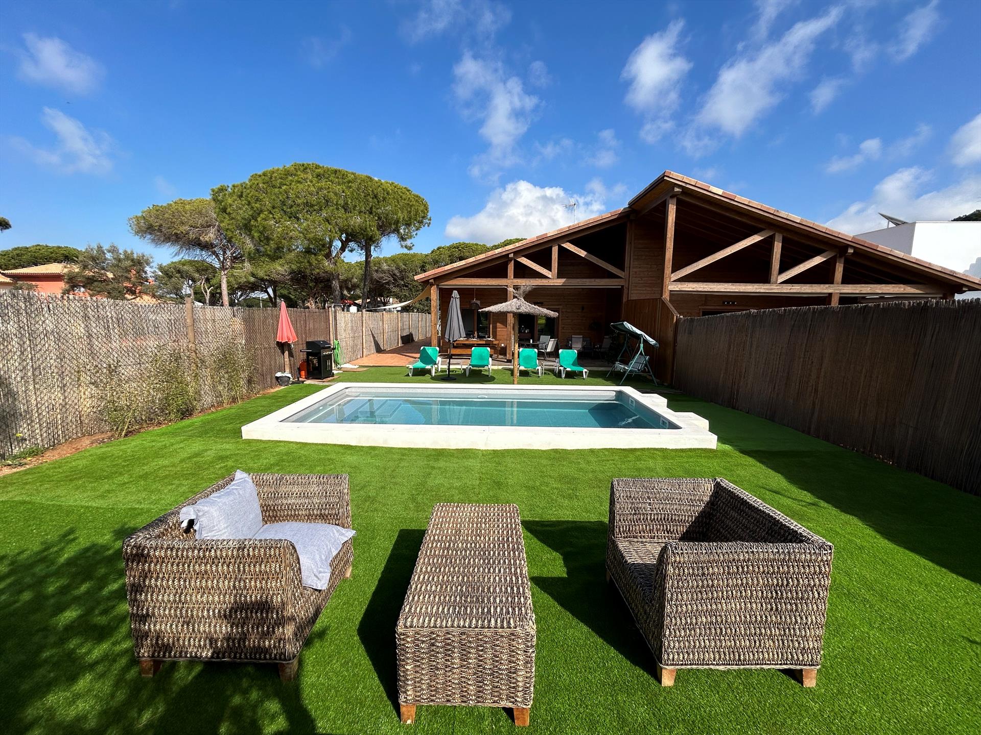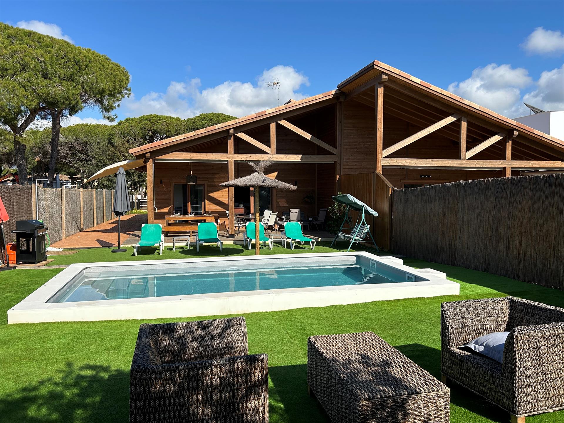 Modern and comfortable villa with private pool in Chiclana de la Frontera, Costa de la Luz, Spain for 6 persons. The house is situated in a residential beach area, close to restaurants and bars, shops, supermarkets and a tennis court and at 1 km from La Barrosa beach.